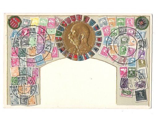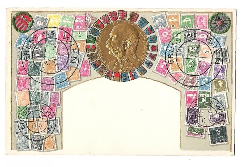 Greeting from Vienna - medal of Franz Joseph , there are coats of arms around