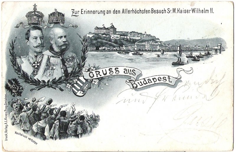 Greetings from Budapest and emperors Wilhelm and Franz Joseph