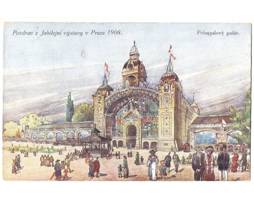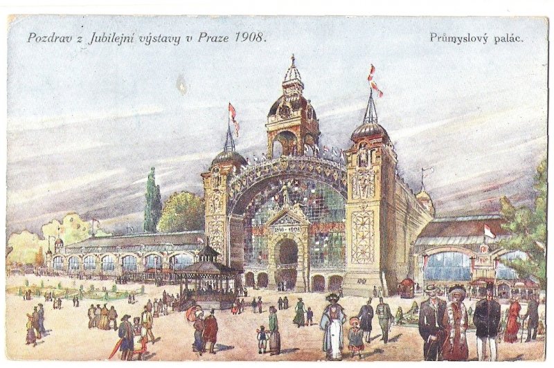 Greetings from Jubilee exhibition in Prague 1908 - Industrial Palace