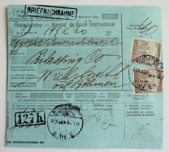 Hungary - dispatch to Bohemia with Prague Castle as a makeshift postage