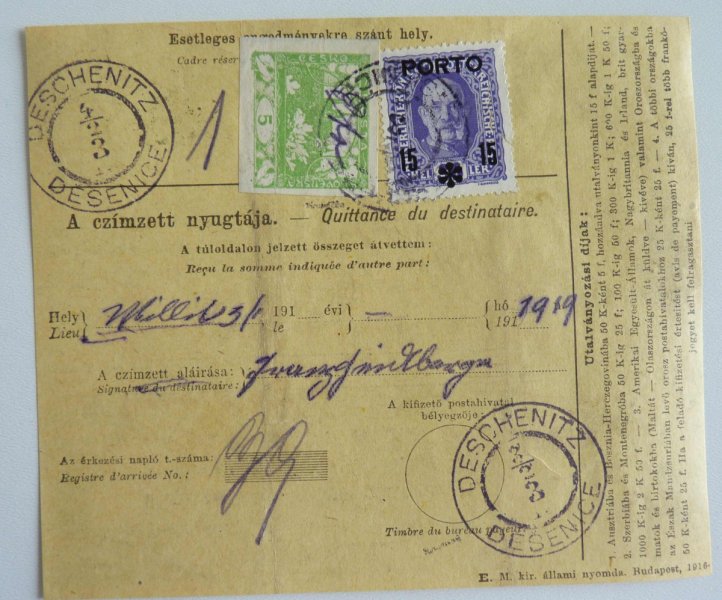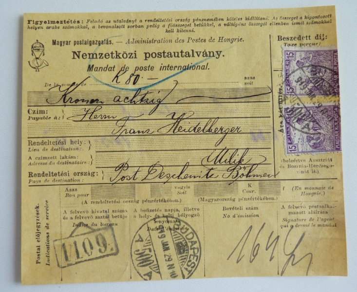 Hungary - dispatch to Bohemia with Prague Castle as a makeshift Austrian postage and postage mark