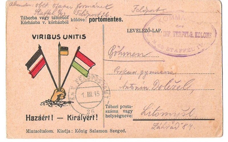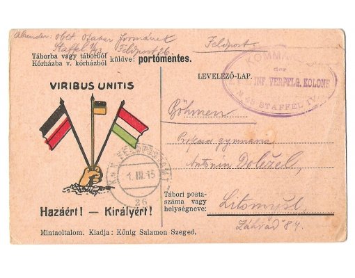 Hungary postcard that was sent to Bohemia