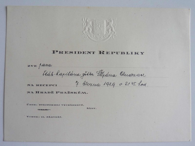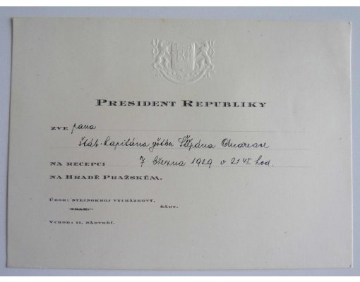 Invitation to the President of the Republic (TG Masaryk) at the reception ....