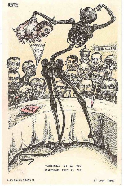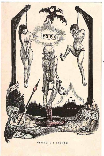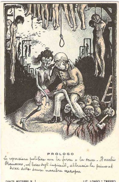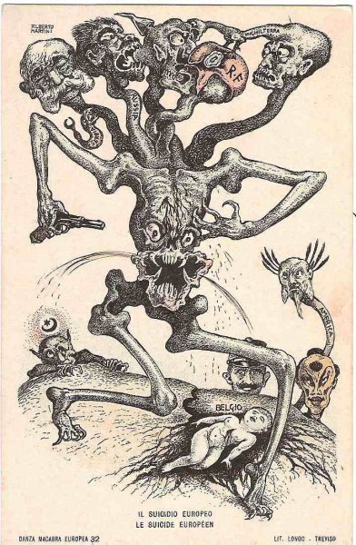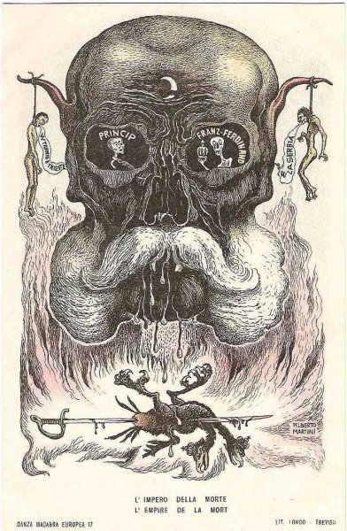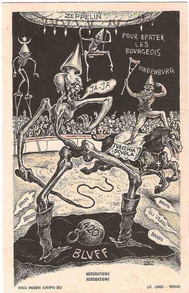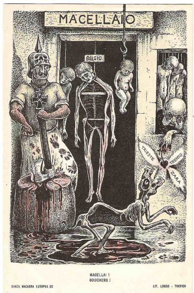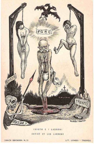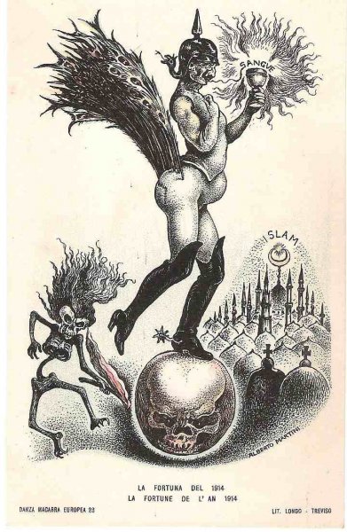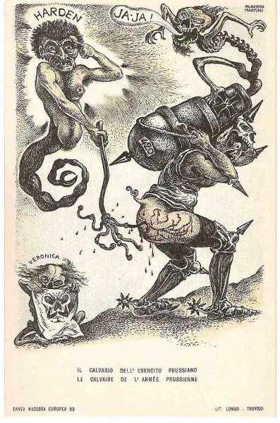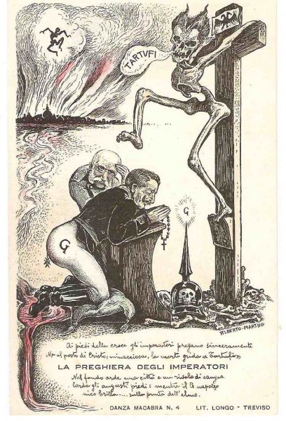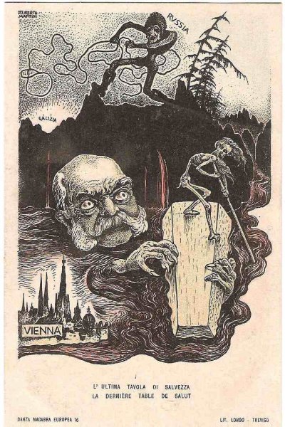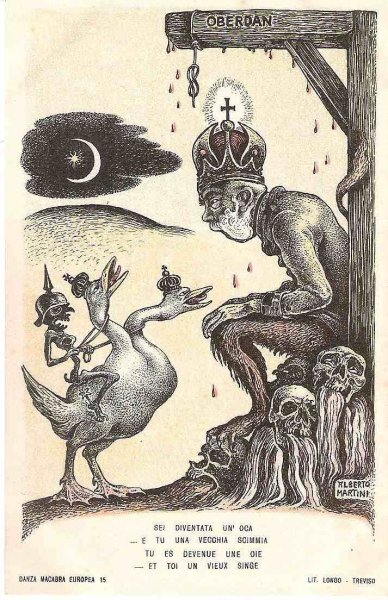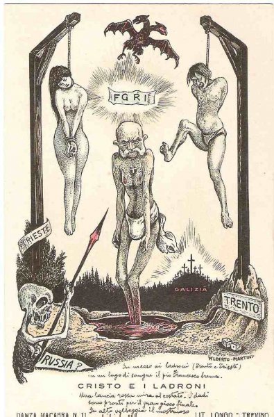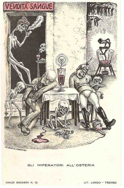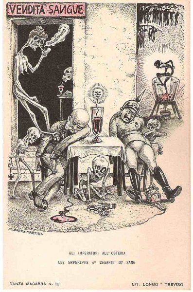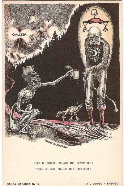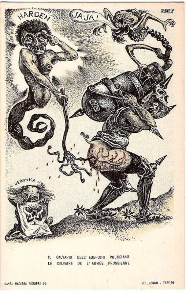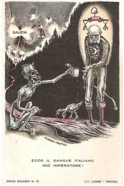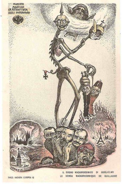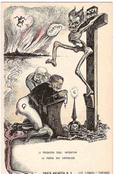 Unique - incomplete set of Italian cartoons on the severity of Emperor Wilhelm and Franz Joseph in Italy - Danza Macabra-RRR!