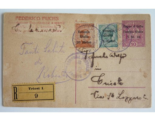 Italy - makeshift / Austrian stationery + franking two Italian stamps with overprint for printing