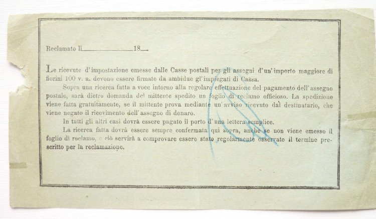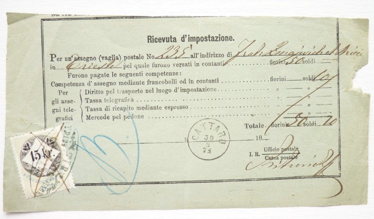 Italy - recepis franked stamp in 1915 Kr .... extraordinary