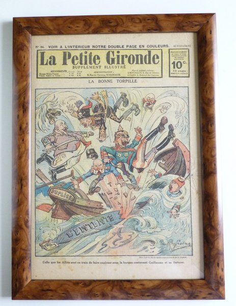 Complete newspaper LA PETITE GIRONDE with cartoons on the losing coalition (Franz Joseph, Wilhelm, Bulgarian and Turkish sultan king ...) - a total collapse