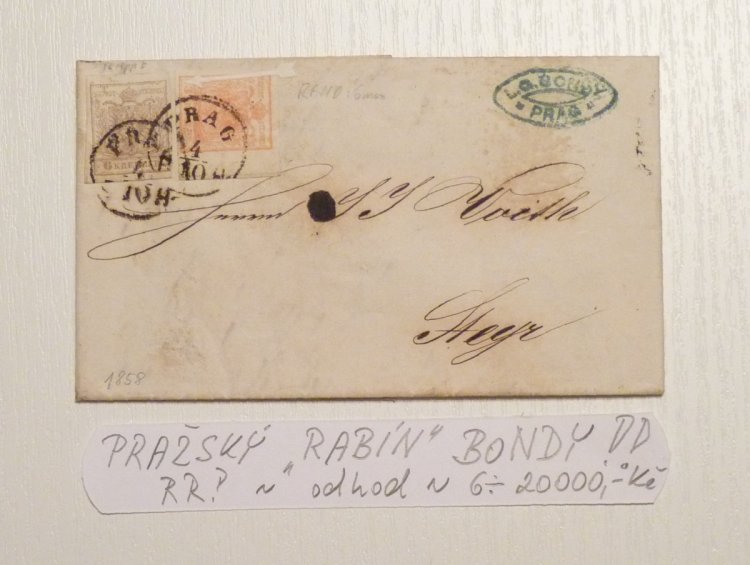 Letter evaluated with 6 Kr. and 3 Kr. , large margins, sender is prague rabbi Bondy