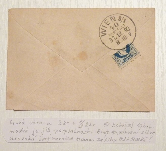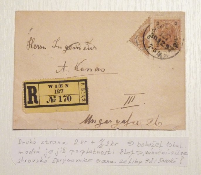 Letter evaluated with mixed emission 2 Kr. and halved 2 Kr., back side F.J. - halved 10 Kr., but unfortunately after the validity of stamps