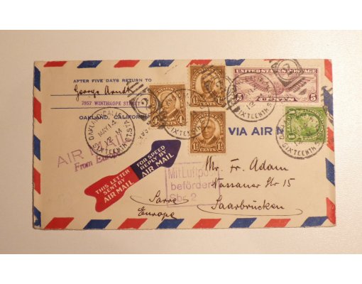 Letter from USA to Germany - interesting stamps