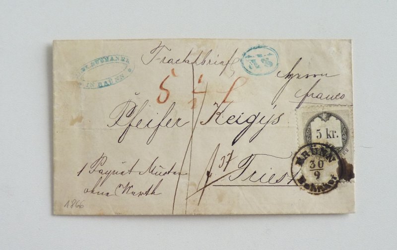Letter with 5 kreuzer fee stamp
