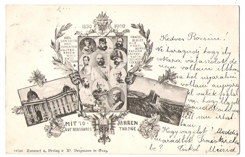 Mini portraits of emperor Franz Joseph and monuments in Budapest