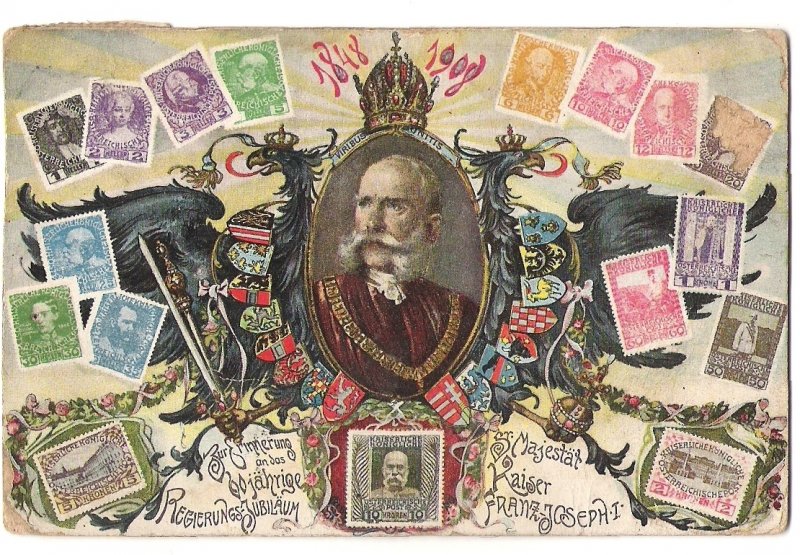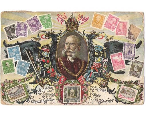 Oval portrait of Franz Joseph , austrian eagle , cold of arms and stamps (5)