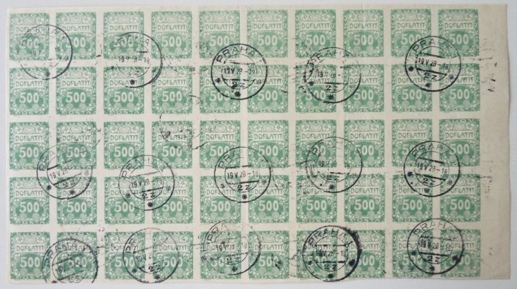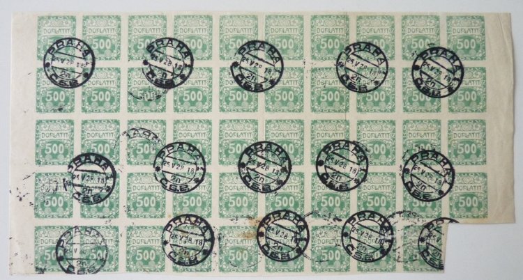 Parts of sheets of the first issue postage stamps and most likely stemming from the settlement of transactions between postal mail or Office Cheques - the Czech philatelic market completely unknown and rare philatelic materials .... RRR