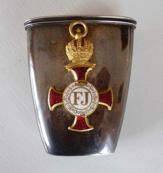 Patriotika - silver cup and a Golden Merit Cross / on the other side is engraved initials of the owner apparently - Austrian army officer, extraordynary