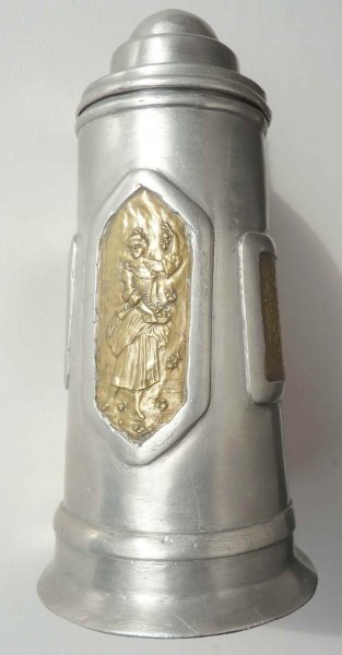 Pewter tankard - pint ornament is used for officer signs - symbols FJI. and eagles, production Hans Schenke / Wien 1916
