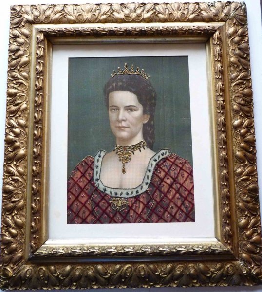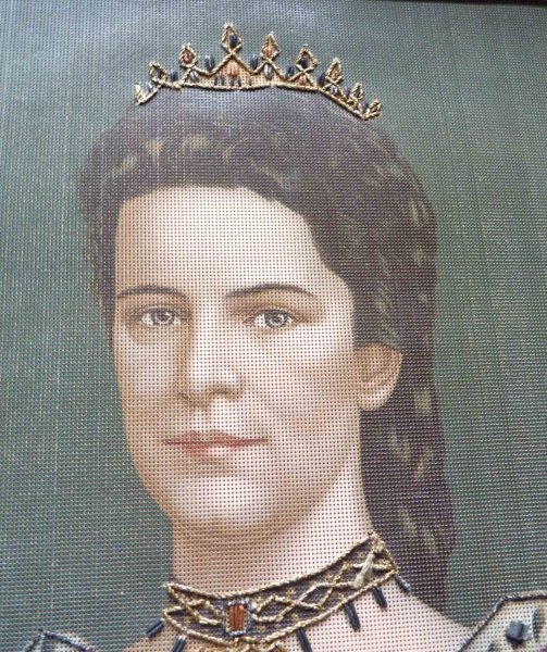 Picture of Empress Elisabet / museum in this image is already - but was re-framed to better quality frame / technique of painting - perforated printing on thick paper and embroidered ... extraordinary