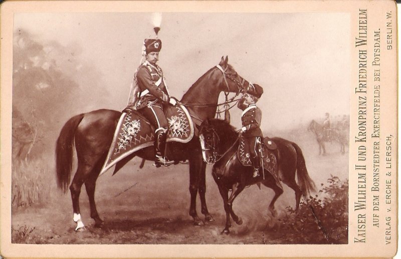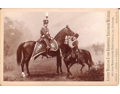 Plate photo of emperor Wilhelm II. and crown prince Friedrich riding
