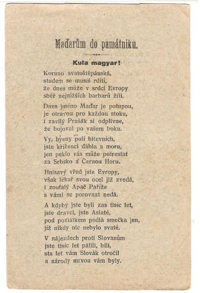Poem in verses : For memory to Hungarian