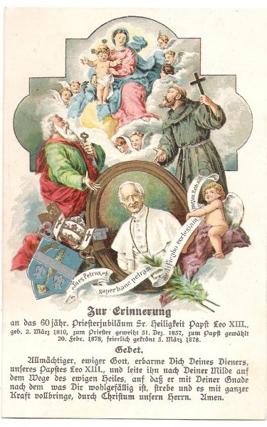 Pope LEO XIII. - jubilee postcard / 60th anniversary