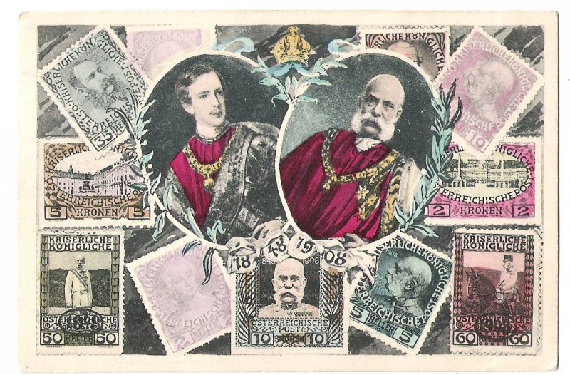 Portrait of Franz Joseph and printed stamps , print variant 3