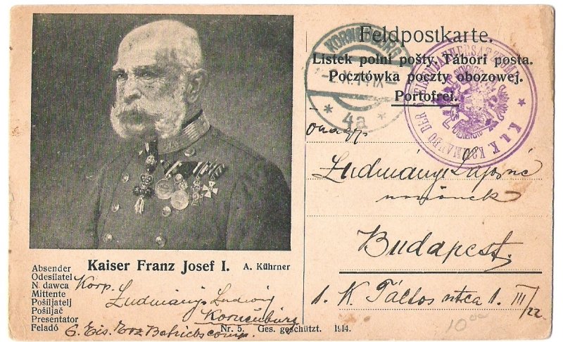 Promotional postcard of 4th army , with Franz Joseph's sign