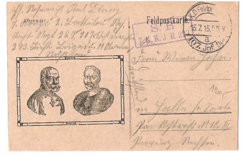 Portraits of Franz Joseph and Wilhelm , field postcard