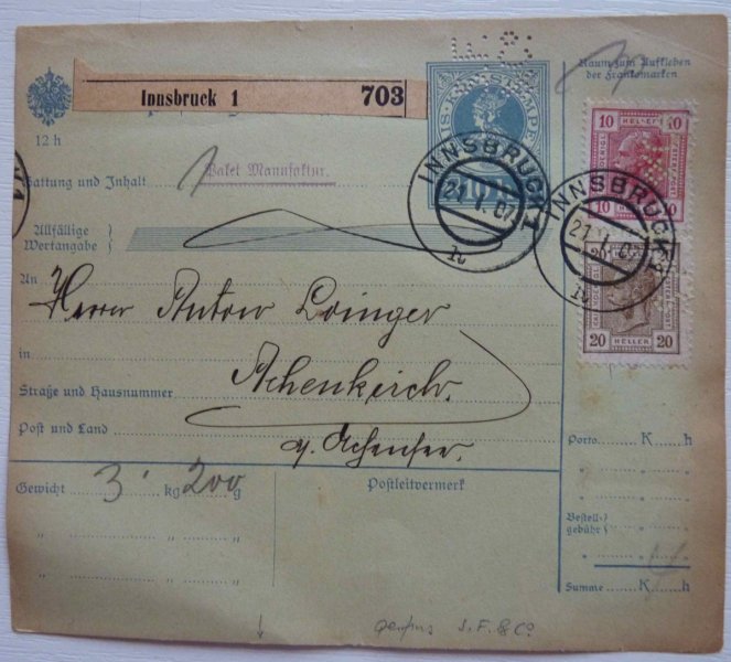 Post dispatch and perfín through its own dispatch - extraordinary (two pieces)