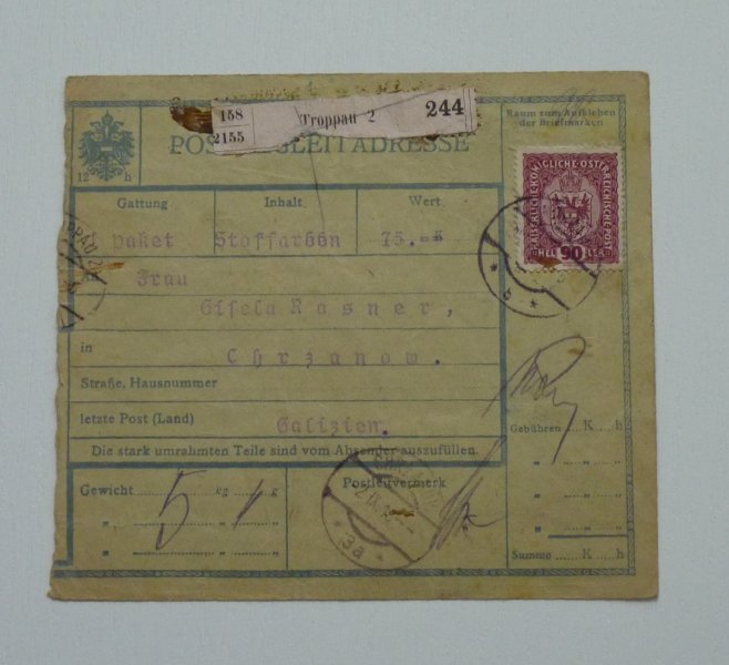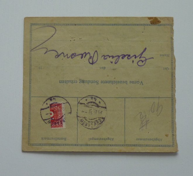 Postal dispatch note with split payroll stamp