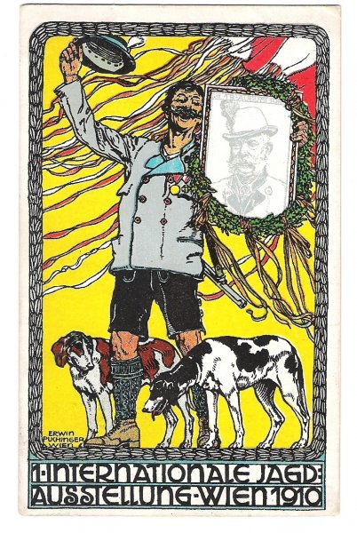 Postcard for international exhibition of hunting , Vienna in 1910