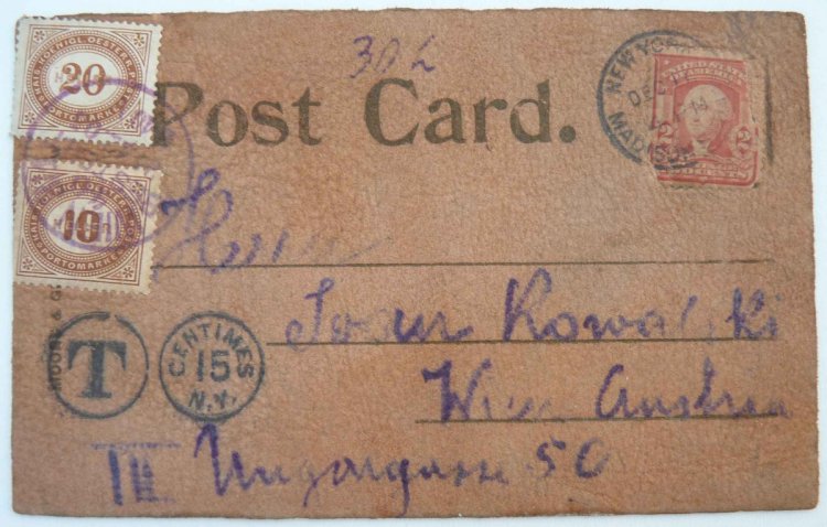 Postcard from USA - Franking .... Made of leather / rare
