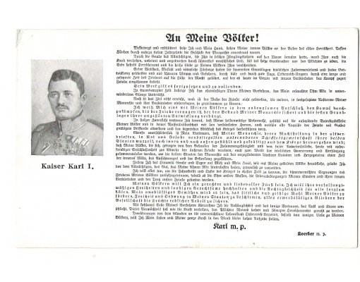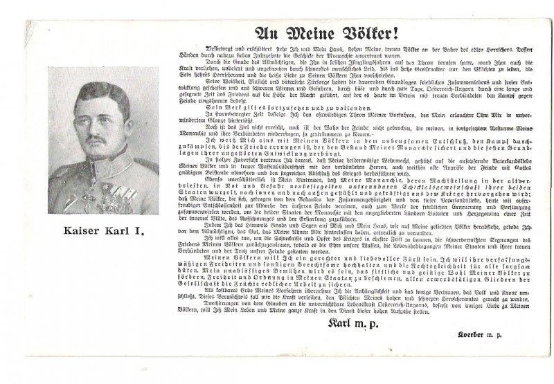 Postcard of emperor Karl I. with declaration