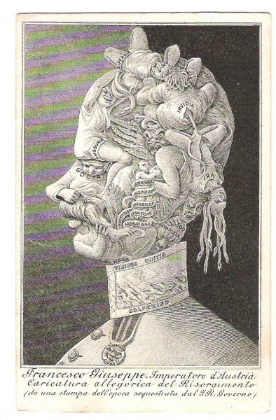 Postcard of Francesco Giuseppe portrait made by naked women bodies RR!