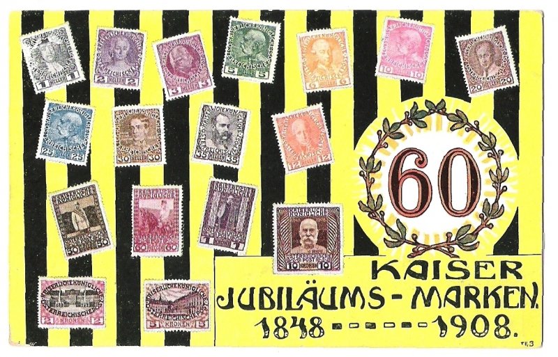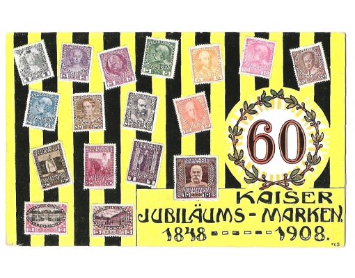 Postcard with jubilee series of stamps Franz Joseph (4)