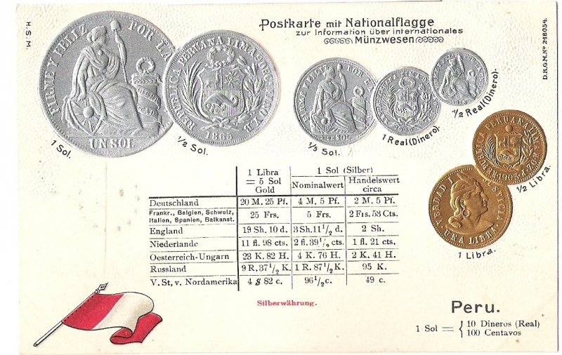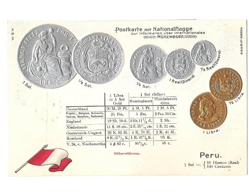 Postcard with coins - Peru
