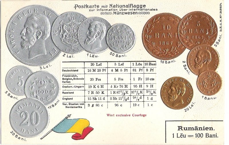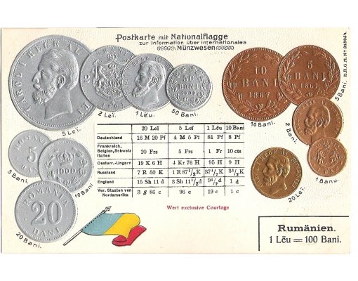 Postcard with coins - Romania