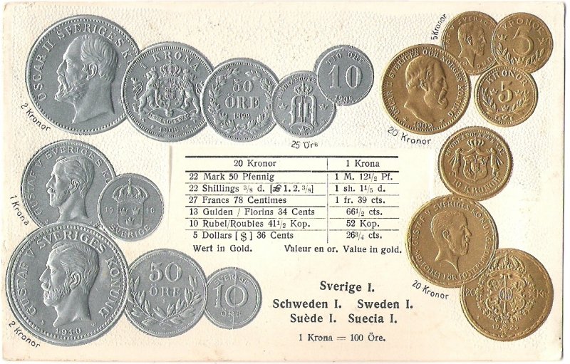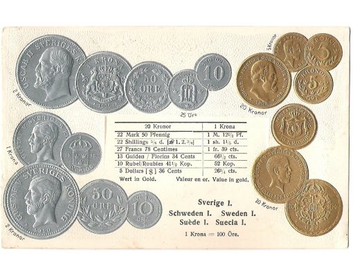 Postcard with coins - Sweden