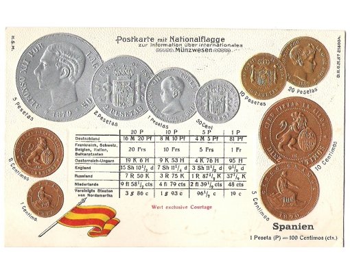 Postcard with coins - Spain