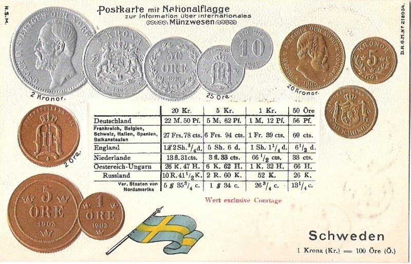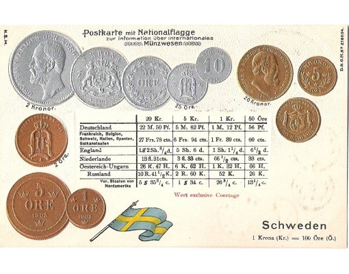 Postcard with coins - Sweden , print variant