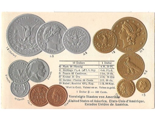 Postcard with coins - USA