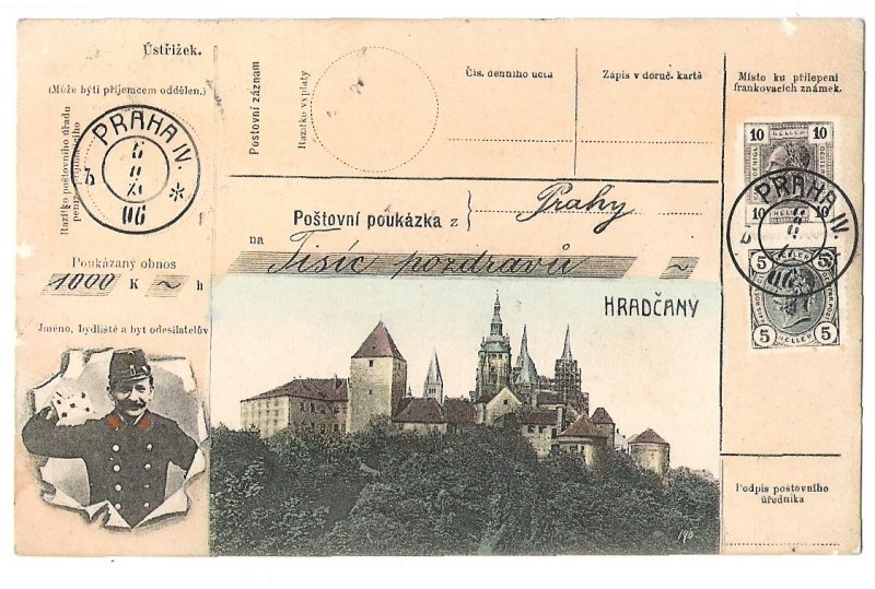Praha IV. - post man and stamps of Franz Joseph