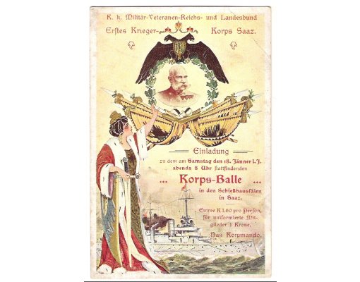 Kneeling Franz Josef is praying for succes of austrian ships + text