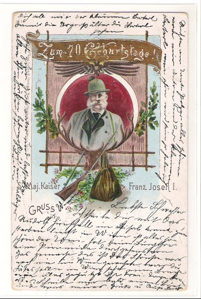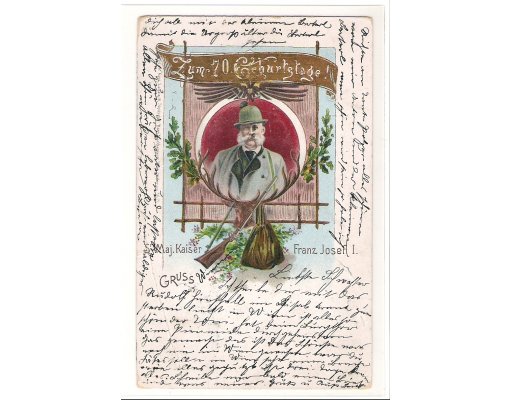 Unused postcard with additional printing - 70th emperor's birthday © 2012 franz-josef.cz; realized KETNET Ltd. (website, e-shop, web presentations), hosted and operated by CMS Modeline MODElina, connected to the network TaNET