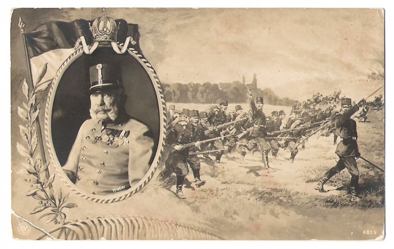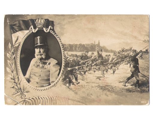 Print variant of attacking soldiers and Franz Joseph in the frame