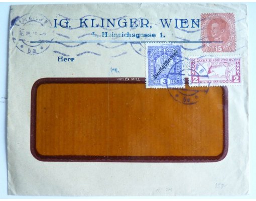 Stationery Envelope 10 Kreuzer - Large format franking marks two mA 5 K...