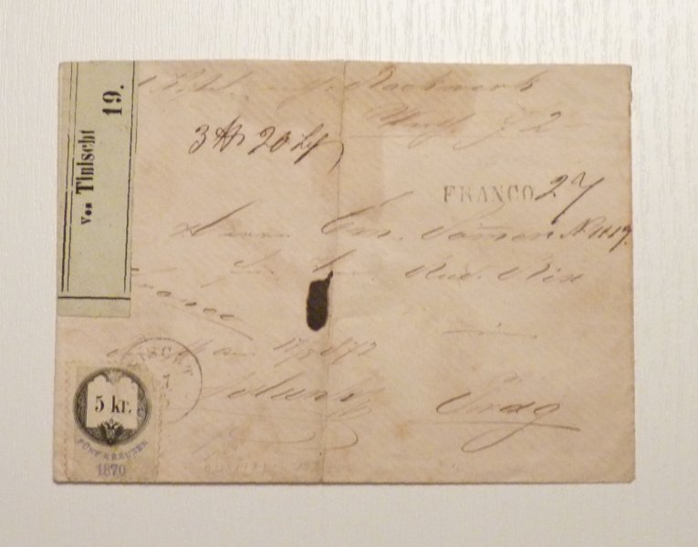 Railway letter valued with 5Kr fee stamp - Podebrady © 2012 franz-josef.cz; realized KETNET Ltd. (website, e-shop, web presentations), hosted and operated by CMS Modeline MODElina, connected to the network TaNET