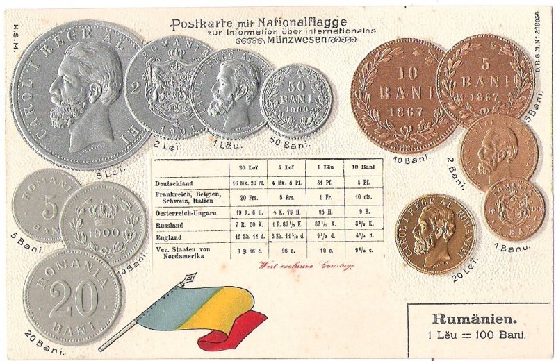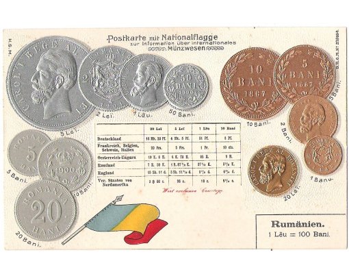 Romania - postcard with coins
