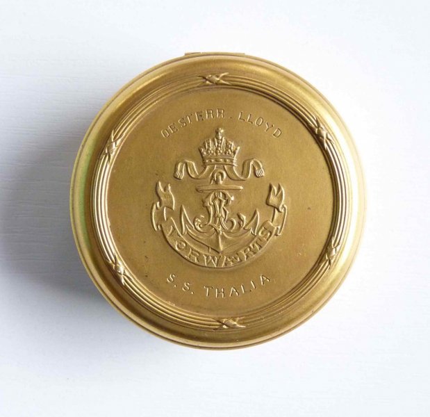 Brass - box from austrian transport ship THALIA / apparently to snuff or the candy, rare