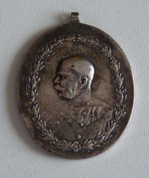 Silver medal of Franz Joseph in uniform , horses