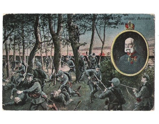 Soldier attack at Grodek , Franz Joseph in oval frame